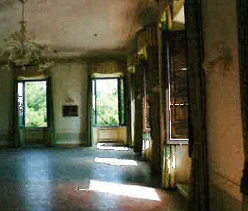 The interiors are characterised by spacious lounges and decorated ceilings, and large windows. The rooms are spacious and airy with fireplaces and bathrooms The inner courtyard enclosed between the two wings is below the garden, and in the centre is a balustrade that connects the garden directly with the first floor of the villa